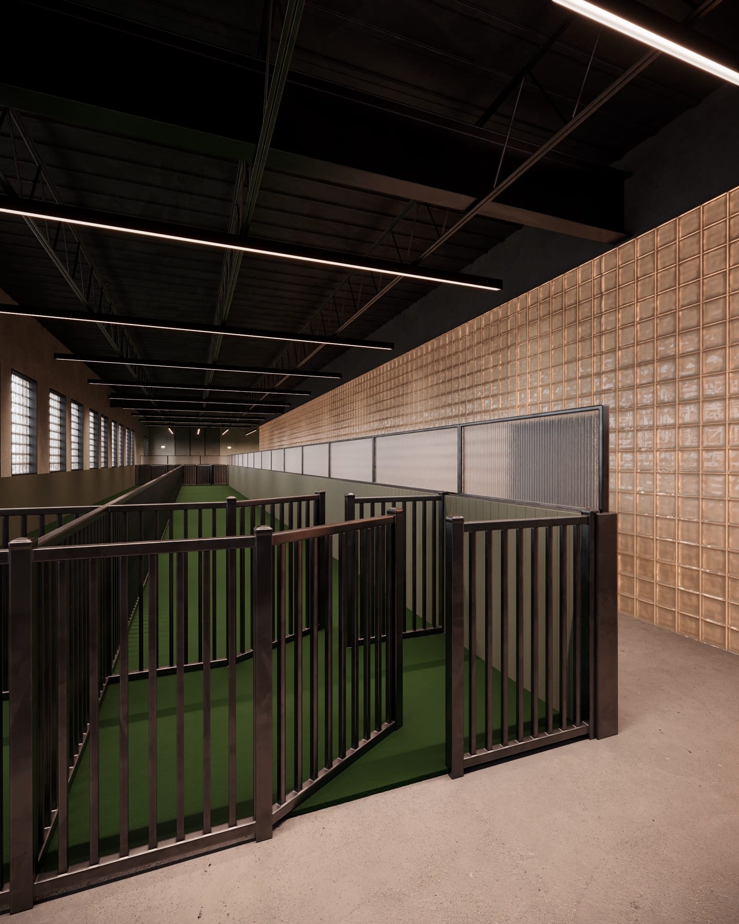 A spacious, climate-controlled indoor park where dogs can move freely, play hard, and socialize safely year-round.